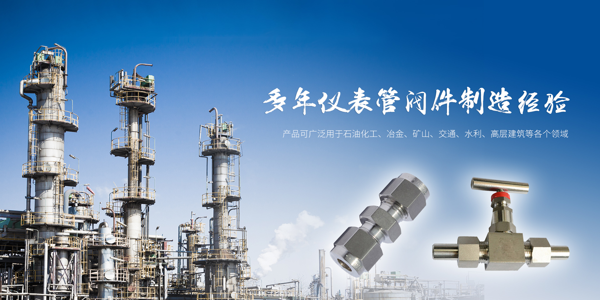 主營儀表針型閥、不銹鋼卡套接頭、儀表管件閥門,產品廣泛應用于石油、化工、電力、冶煉、船舶、城市供排水、煤氣等系統,深受廣大用戶歡迎。